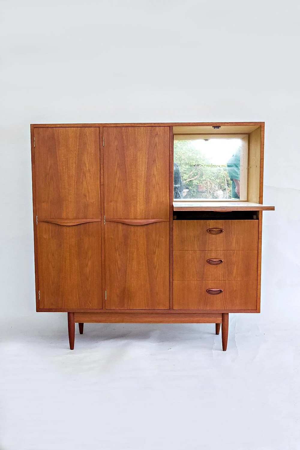 This 1969 drinks cabinet, made by Australian Mid-century powerhouse Chiswell is nothing short of a show stopper. If only furniture could talk, imagine the wild parties it has seen and stories it could tell. It features felt lined draws, a rack for 5 of your best bottles and a glass backed mixing station. It has been fully restored with only minor signs of those wild nights.